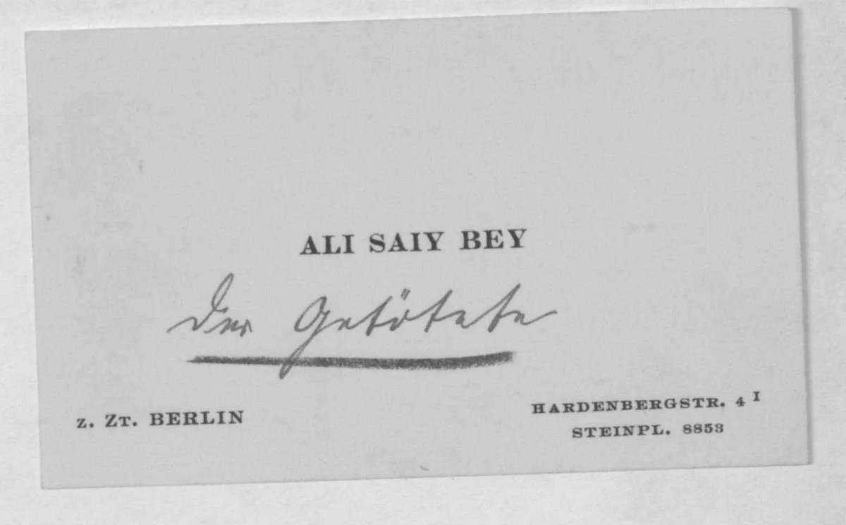 In the rush to publish, the next day’s New York Times, relying on a special cable from Berlin, got numerous details wrong. It reported that Soghomon had tapped Saiy on the shoulder and “pretended to claim acquaintance with him”, that Saiy’s wife had been present, and that she had been injured. None of these had any basis in fact. Additionally, in a followup article (March 17), Saiy was misrendered as “Sali” and the following day (March 18), the Times rendered it as “Saïd.” Of course, by that time “Ali Saiy Bey” was known to be an alias. His true identity had sent shockwaves around the world.